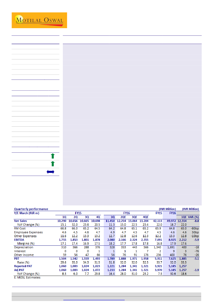 1QFY16, driven by lower RM cost benefit. EBITDA at ~INR2b (v/s est. INR2.2b)
