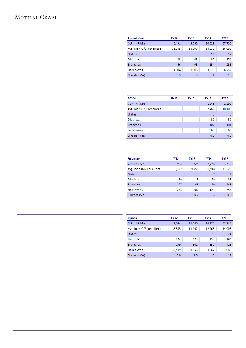 and 4 from south India Janalakshmi and Ujjivan, Karnataka; Equitas, Tamil Nadu and