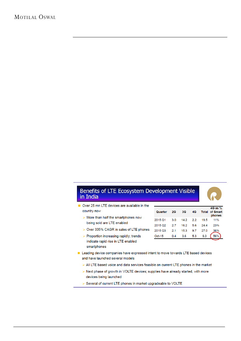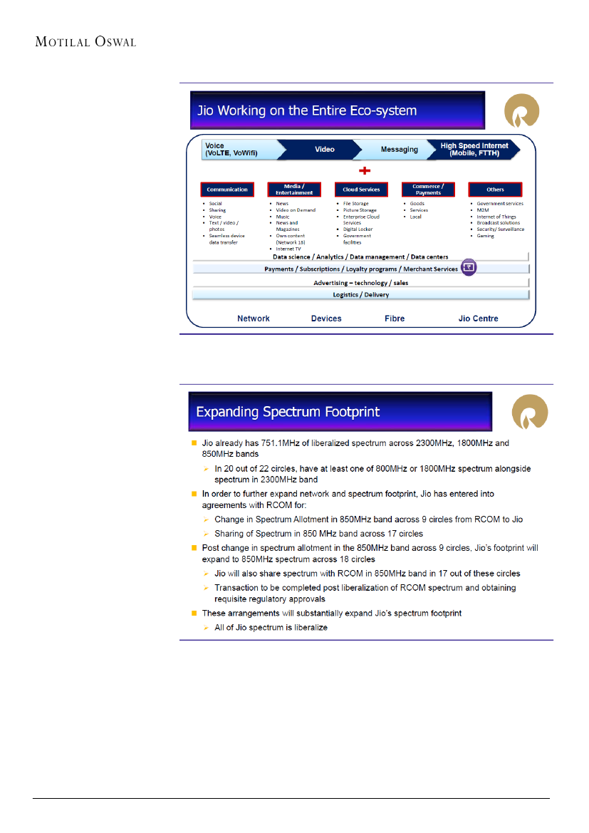 FY17. RIL indicated that telecom business will be launched in next few weeks/months,