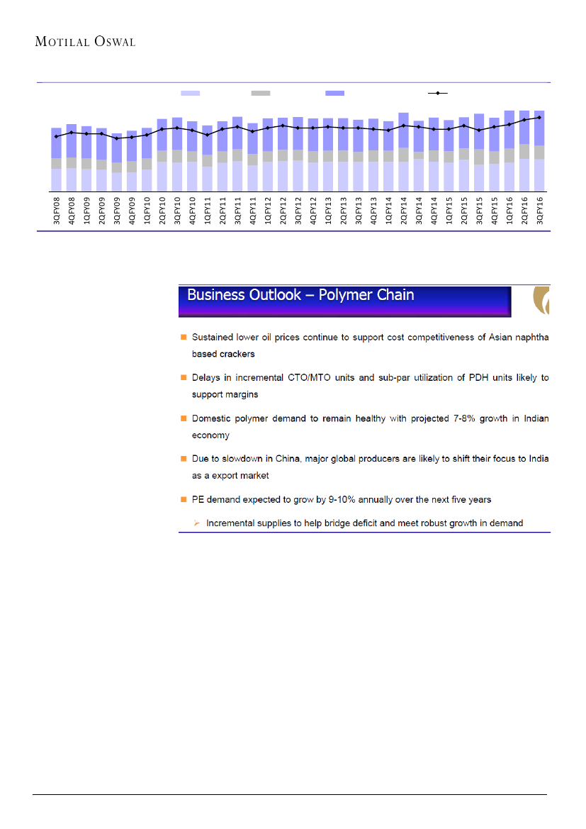 Petchem EBIT at INR26b (+18% YoY, +3% QoQ) with EBIT margin at 14.4% was