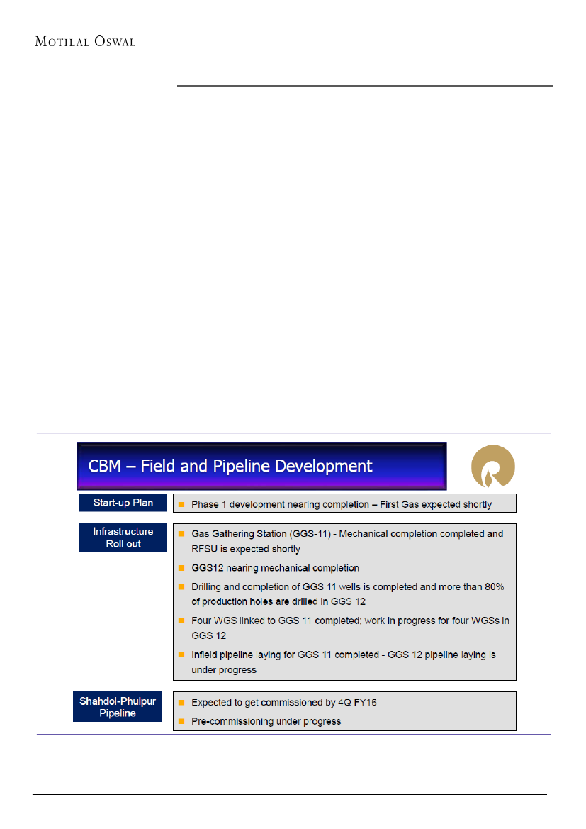 largely on track for full commissioning by end 2016. RIL remains confident on