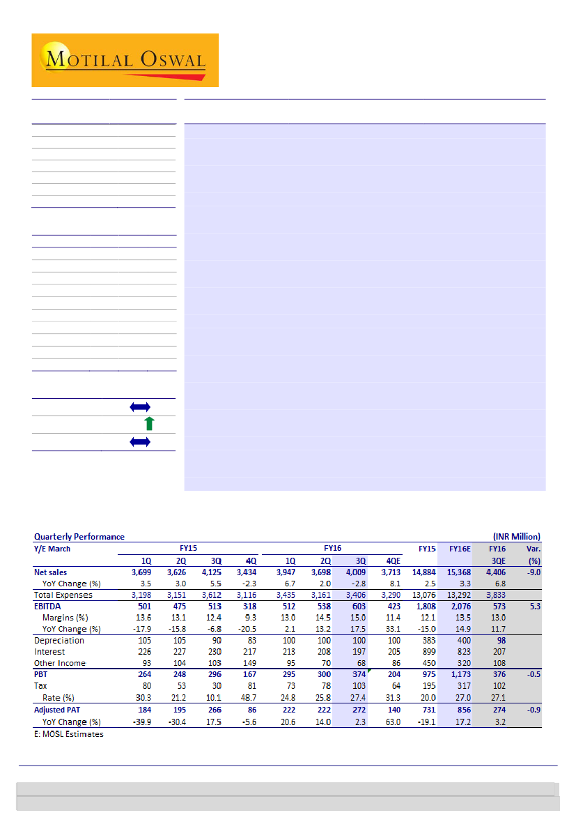 increase in Southern states in FY17. 4) Net debt stood as on 3QFY16 is INR8.2b.