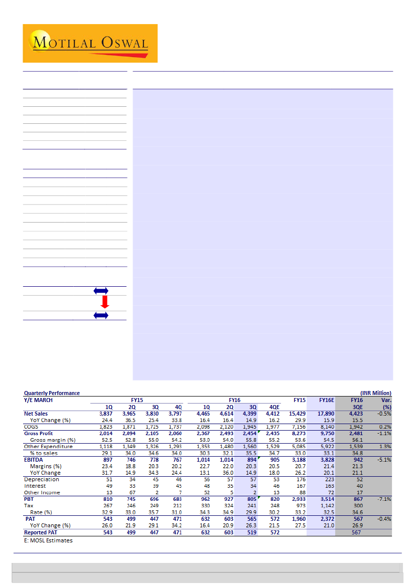 3QFY16) and higher other expenses (up 10bps YoY) resulted in flattish EBITDA
