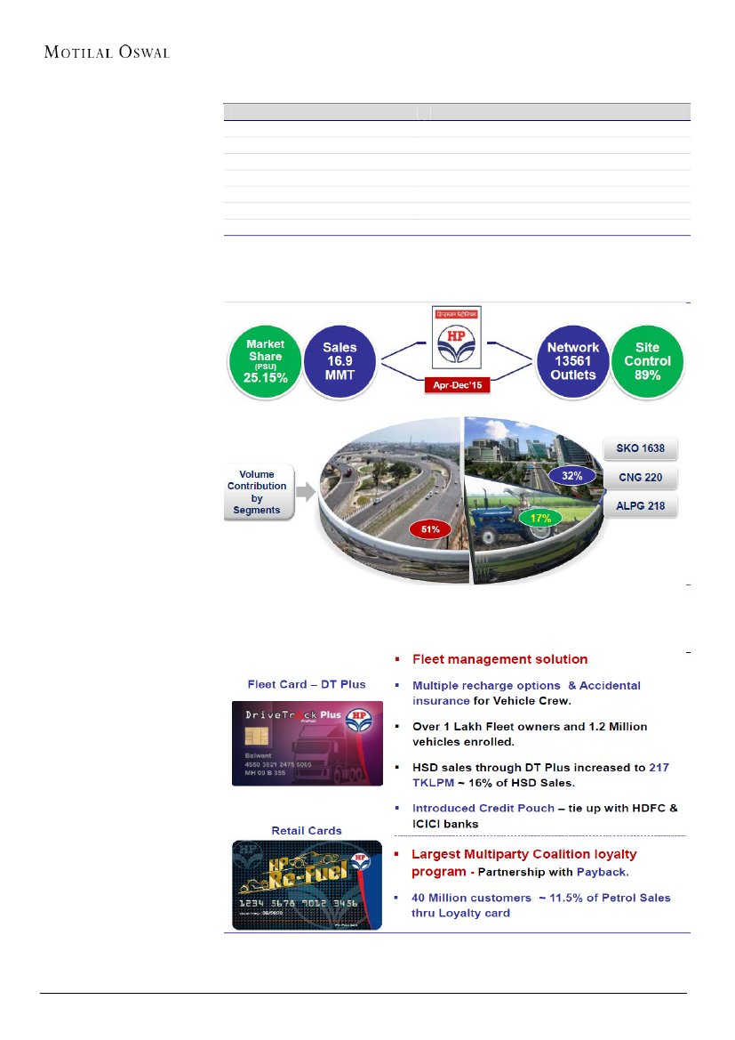 refineries, INR100b for marketing and rest for JV projects (Bhatinda and LNG).