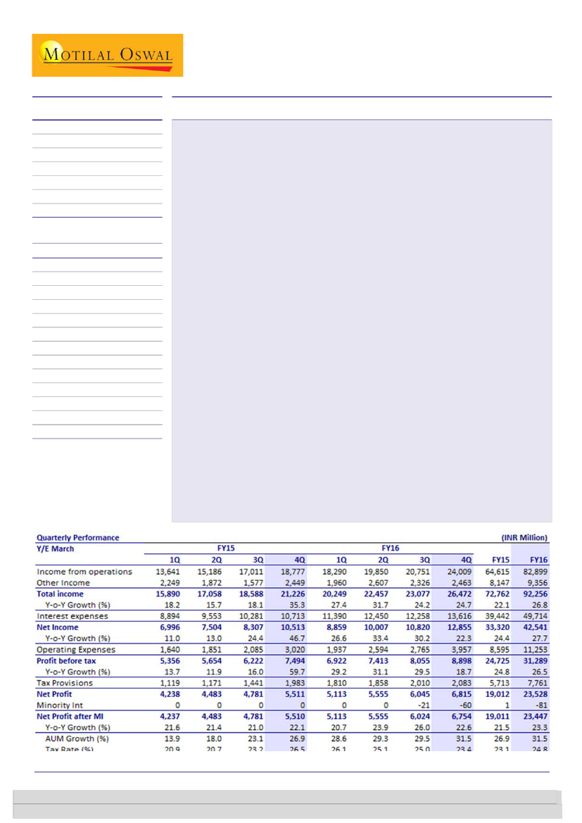 ZCBs. d) Sold loans of INR37.9b in FY16 v/s 25b in FY15 e) Not looking to raise