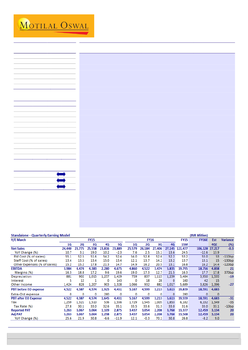 for 4QFY16 at INR27.1b were in line with our estimate of INR27.2b and were up