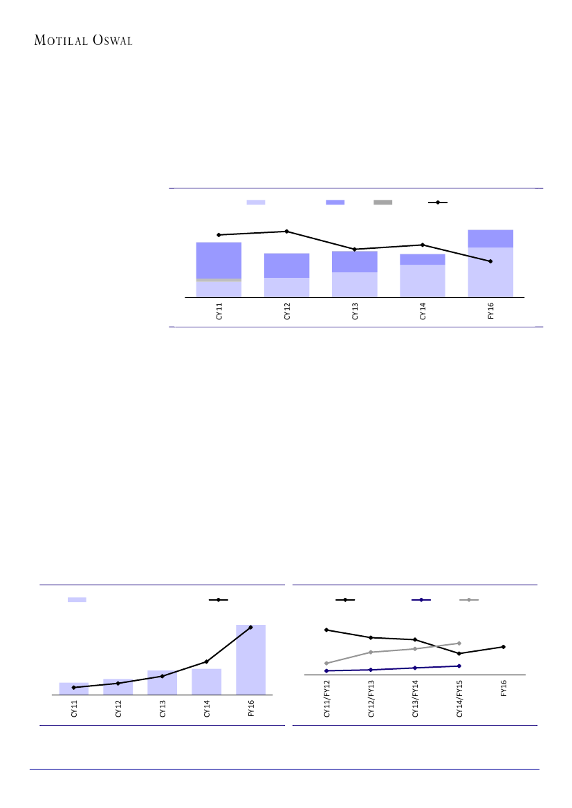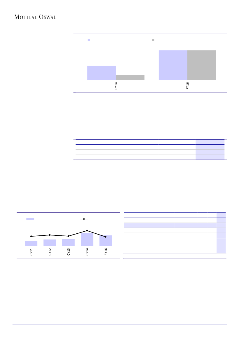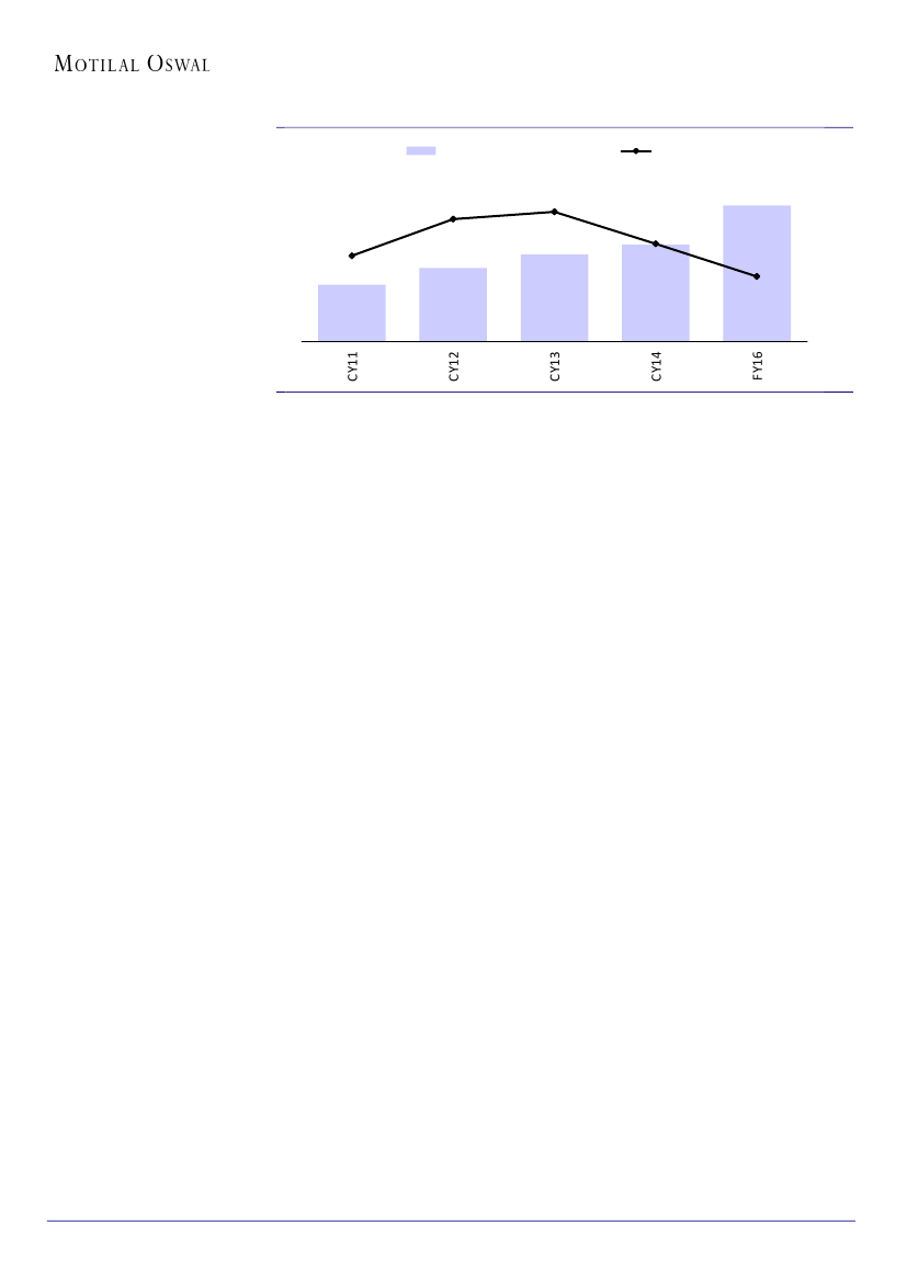EBITDA margin increased from 13% in CY14 to 16% in FY16,