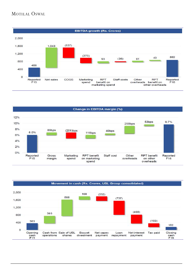relaunched in FY16 viz Royal Challenge, McDowell No 1 and Signature as well as the
