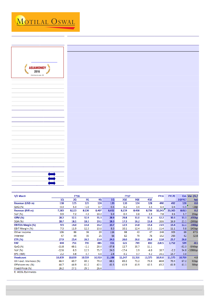 the margins front. We expect margins to decline 30bp in FY17 and expand 50bp