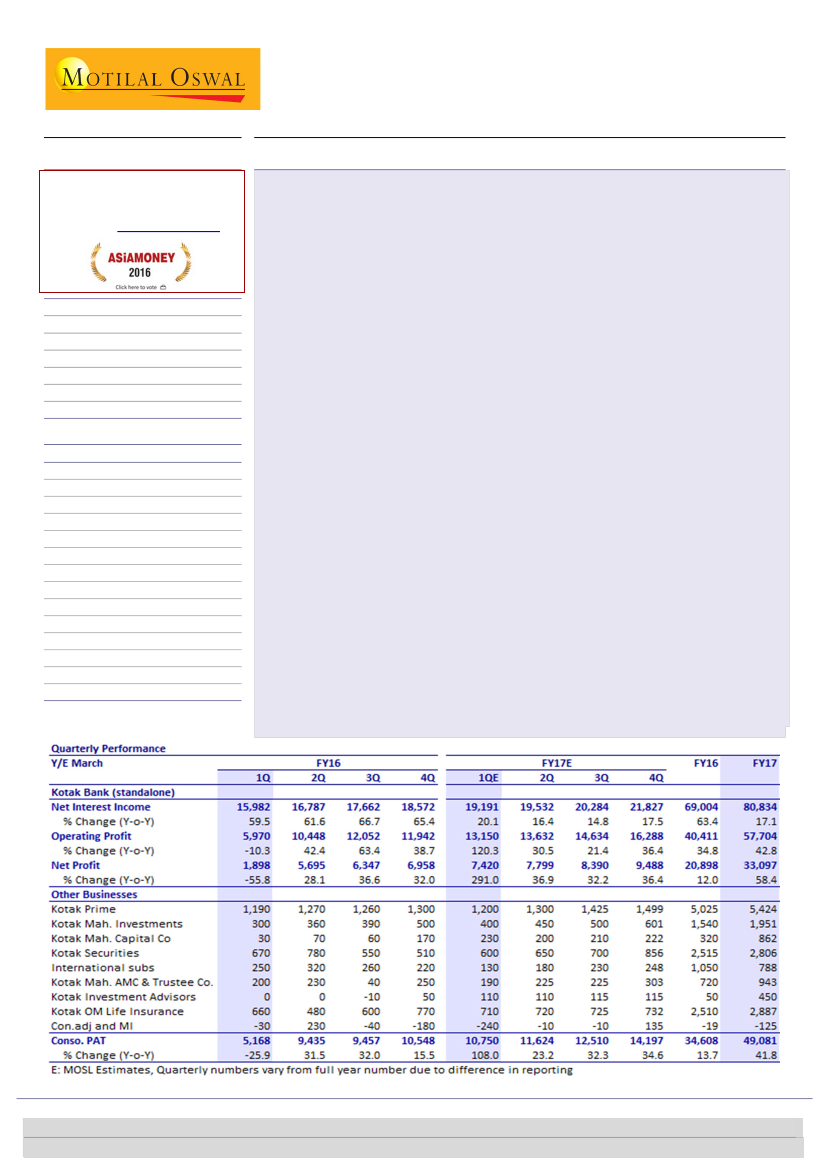 book of INR1.2t and loan market share of 1.7%+. KMB’s premium multiples are likely