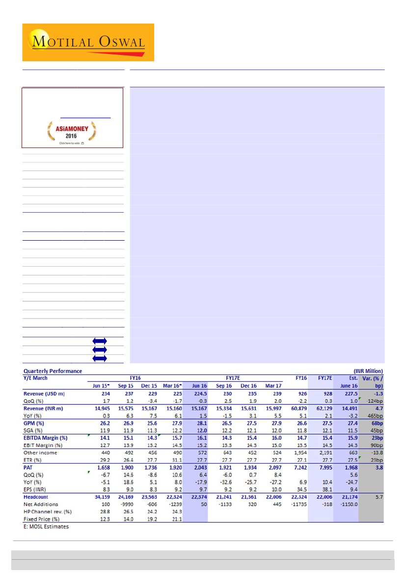 of the HP Channel 2Q onwards. In 1QFY17, revenue from the HP channel declined by