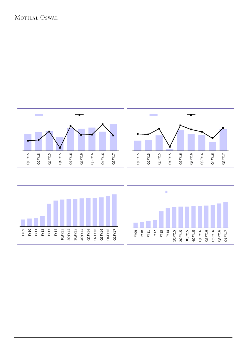 growth slowed to 13% YoY in 1QFY17 (v/s +19% YoY in 4QFY16, and +29% YoY