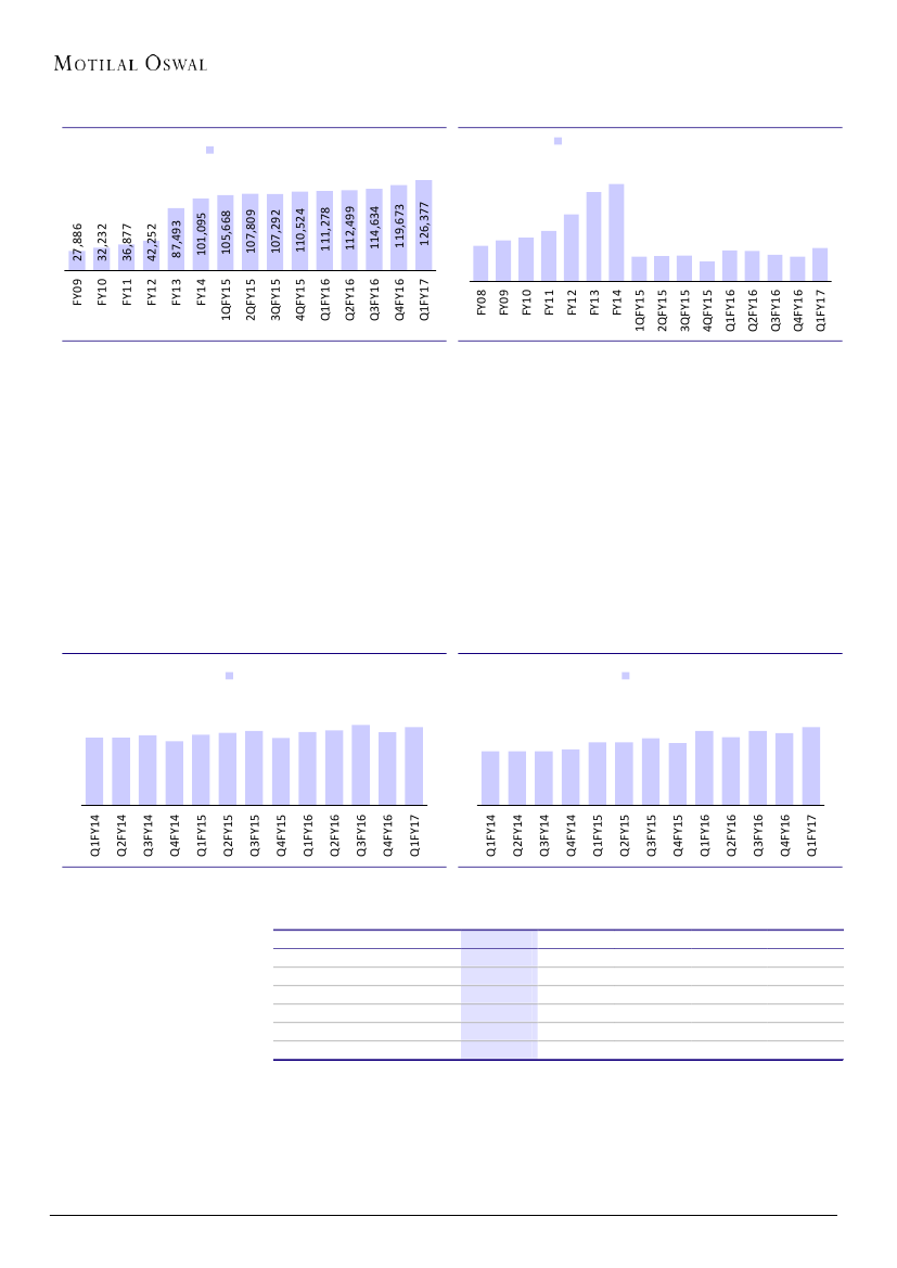 this year. EBITDA margins declined from 22.8% in 1QFY16 to 20.5% in 1QFY17