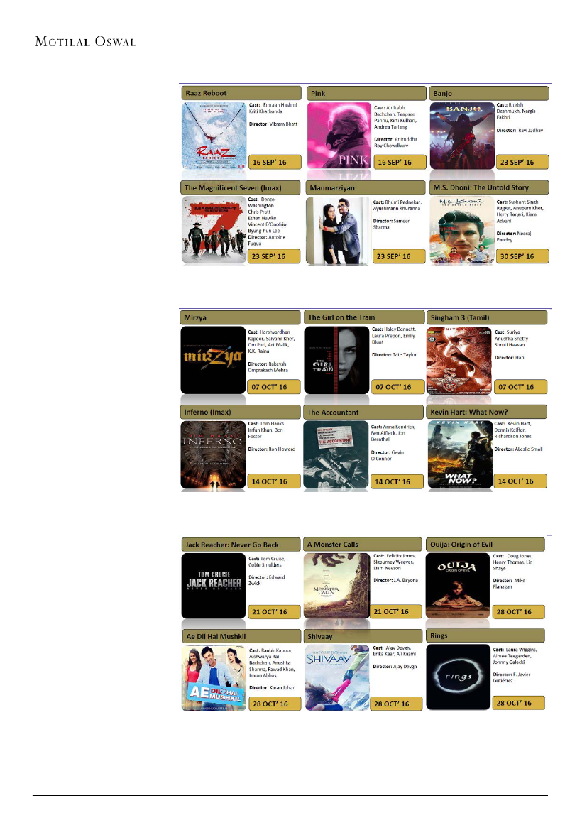 count to 551 screens in 1QFY17. It aims to surpass 600 screens by the end of