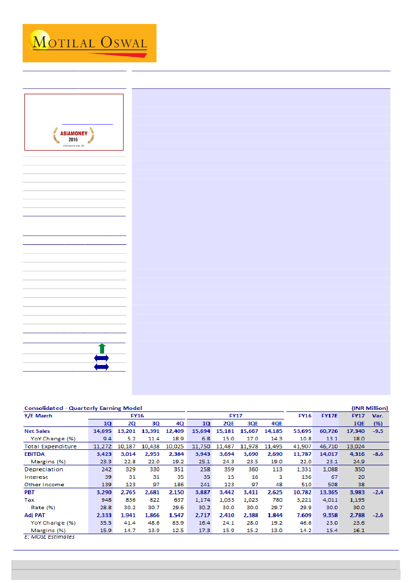 YoY to 21.6%, but EBITDA declined to INR76m vs. INR161m in 1QFY16.