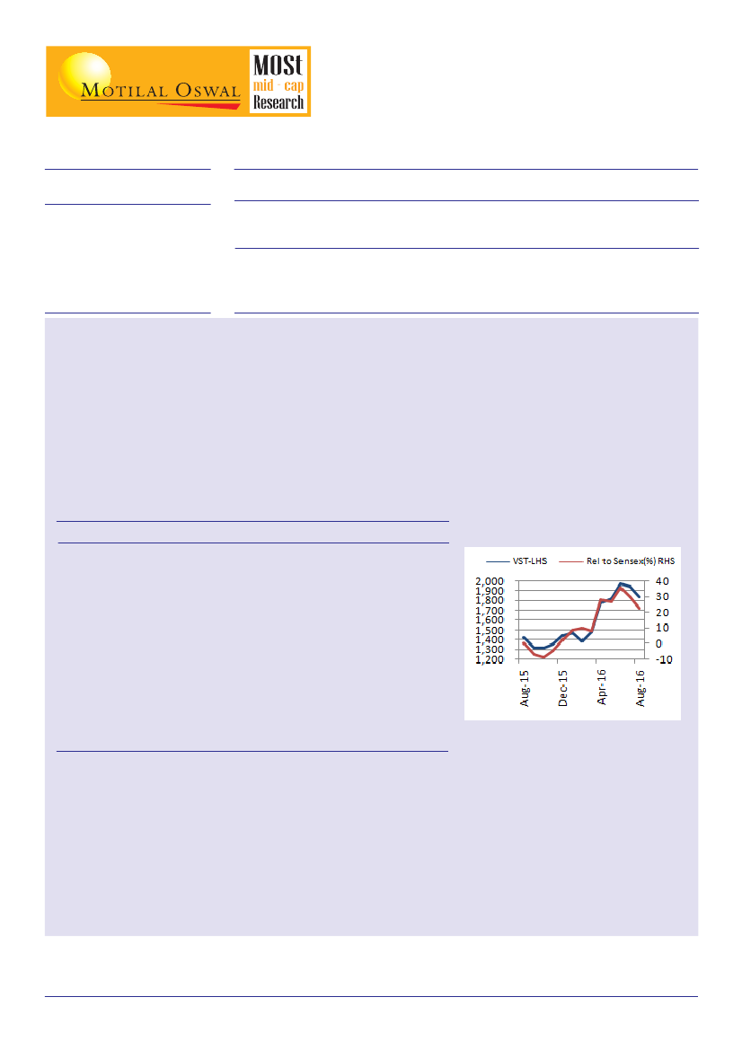 For Q1 FY17, VST's revenue was INR 178.1cr (+6.9% YoY and +0.4% QoQ); EBITDA was INR 24.6cr (-22.3% YoY