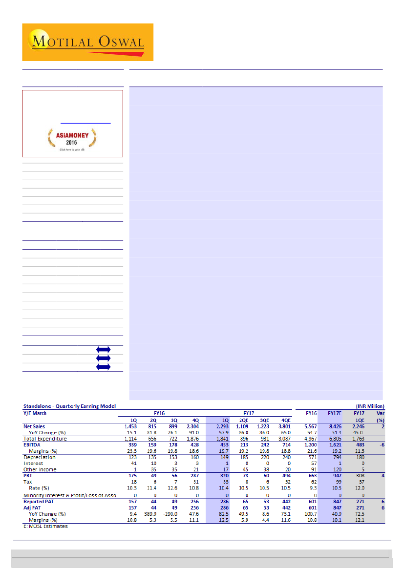 in 1QFY16) and higher other income (INR17m v/s INR1m in 1QFY16), adj. PAT