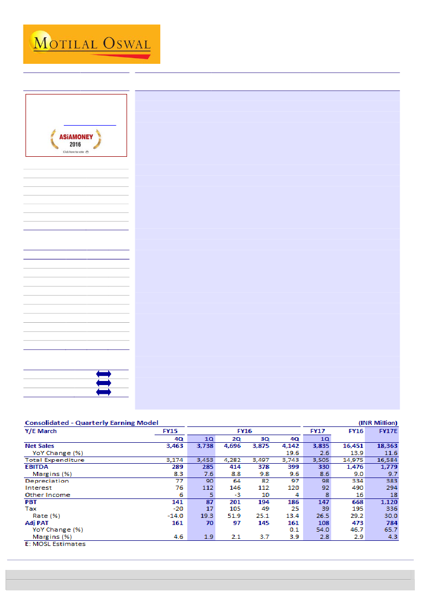 the entire growth for 1QFY17 is mostly due to volume growth. (3) Management