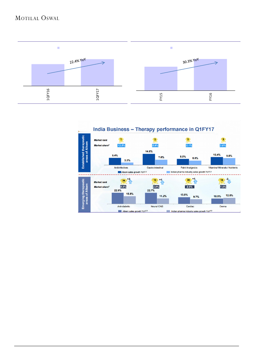 Alkem’s domestic business grew by an impressive 22% YoY. 1Q FY16 domestic