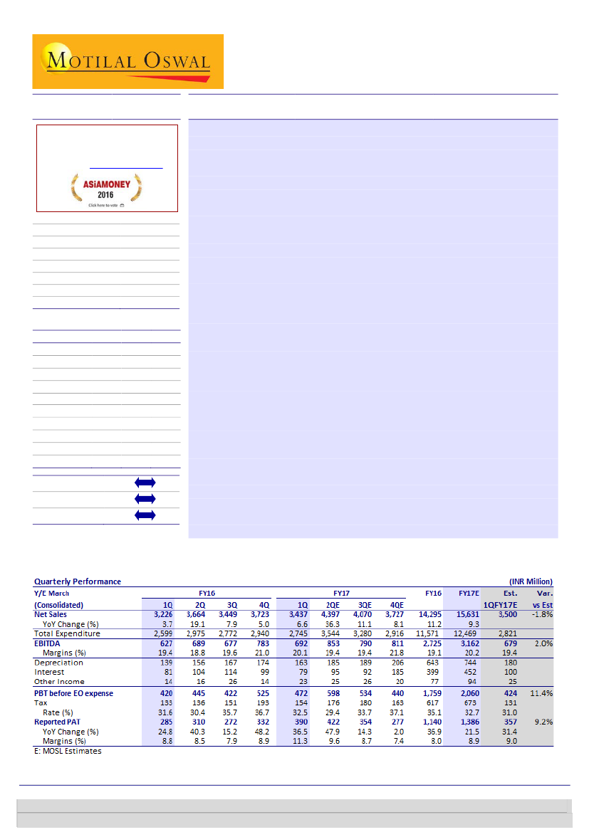 on the back of improved business mix in 1QFY17. EBITDA margins expanded 72bps