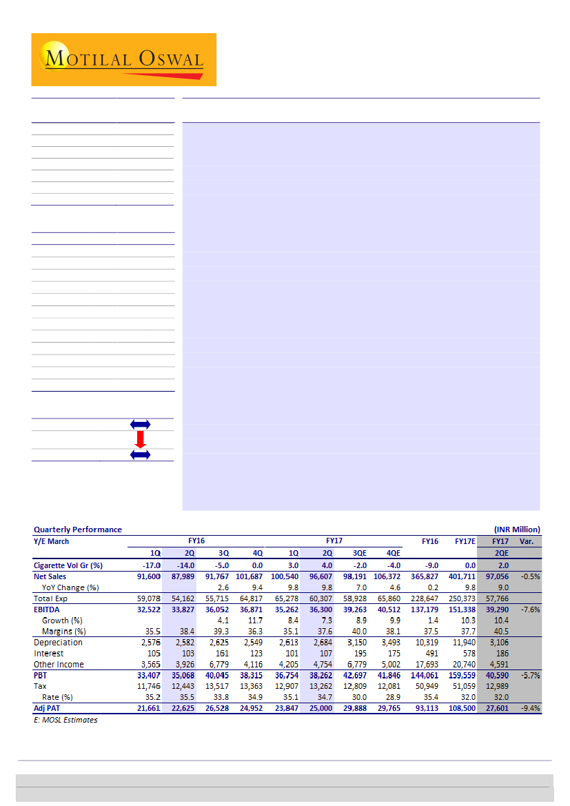 base (2QFY16: 14% volume decline) and lower price increases of late. Cig