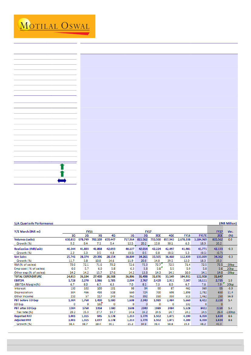 improvement. The stock trades at 22.2x/17.5x FY18E/19E EPS. Maintain