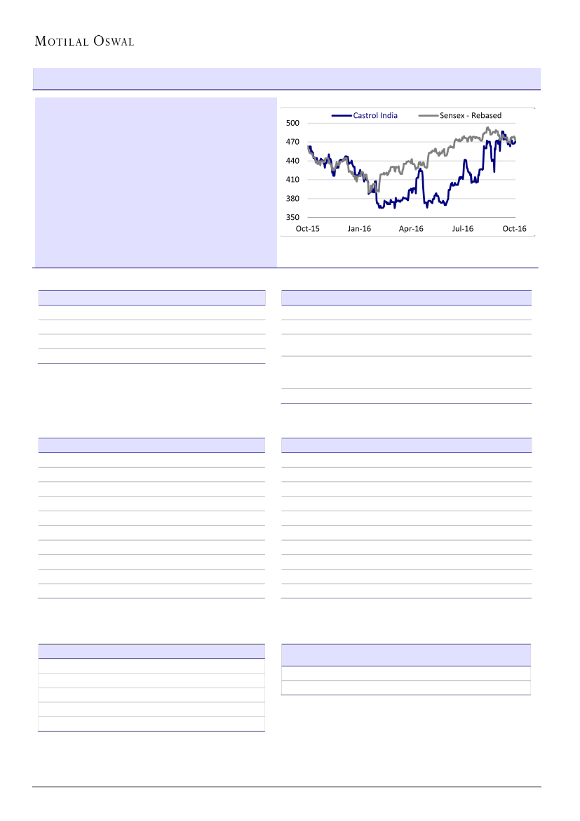 Castrol’s (CSTRL) 3QCY16 reported revenues at INR7.6b (est. of INR8.2b; -3%