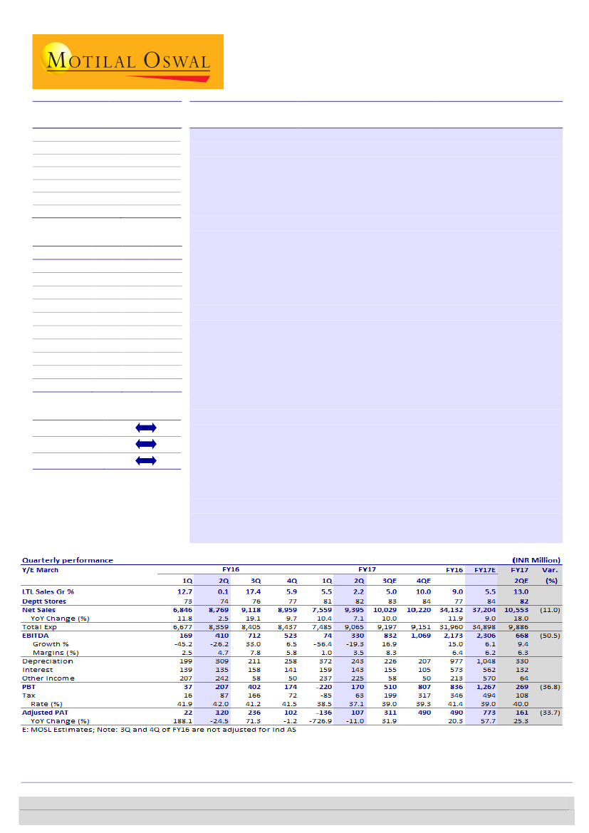 100bp YoY to 21.2%. Store EBITDA declined to INR19m from INR55m in 2QFY16,