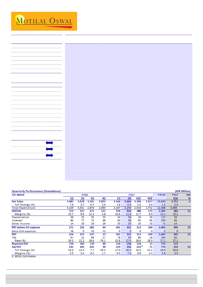 +10.2%) in 2QFY17. EBITDA grew 30% YoY to INR426m (est. of INR382m) due to