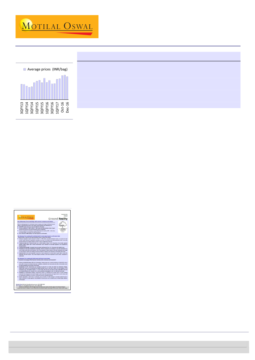 Price decline across regions is ~INR2-6/bag due to demand weakness. Also, price hikes