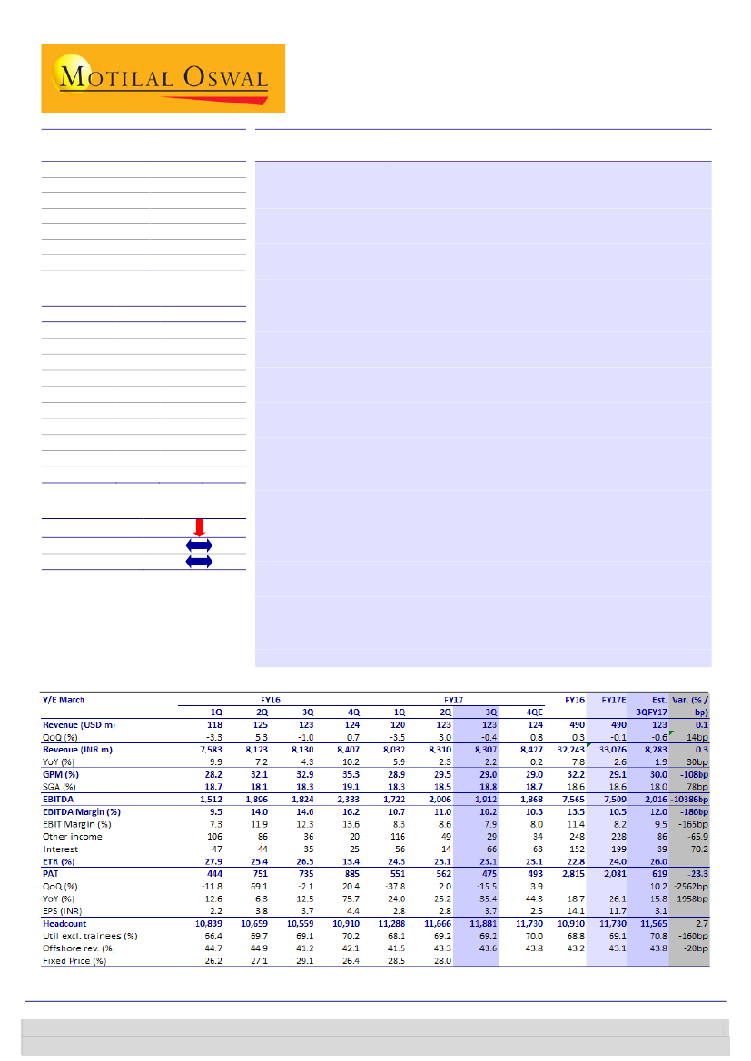lowering the FY17 exit rate. Profitability took a hit as KPIT maintained hiring