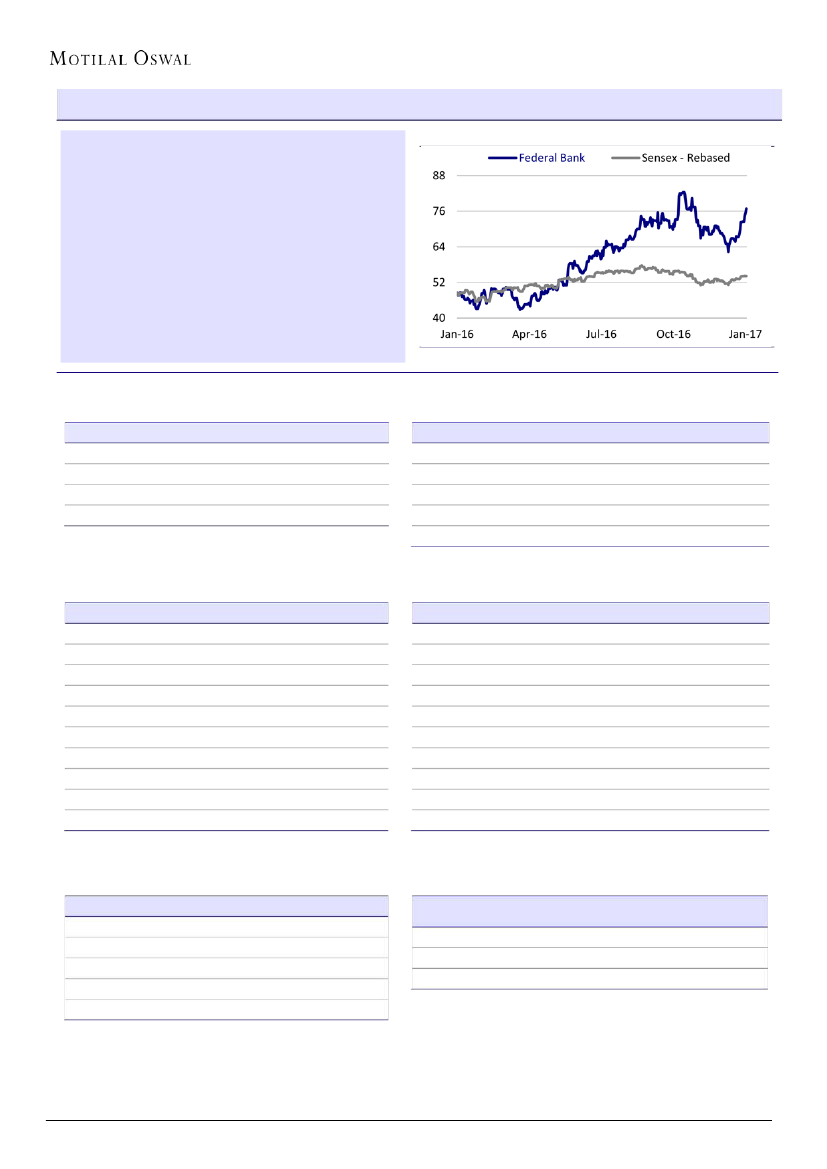 Federal Bank’s (FB) 3QFY17 PAT grew 26% YoY to INR2.05b (10% beat), led by
