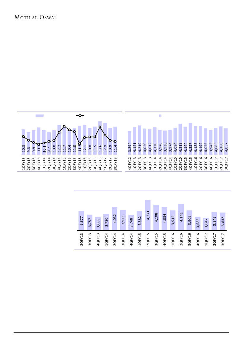 continued, with unitary cost at INR3,832/ton (-2% YoY; flat QoQ).The cost