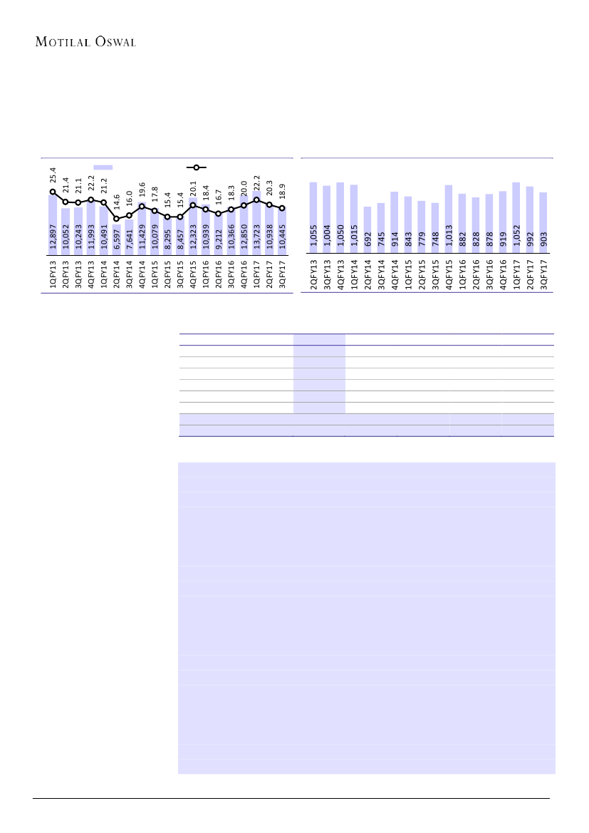 INR89 QoQ; +INR25 YoY) and margin of 18.9% (-1.4pp QoQ; +0.6pp YoY).