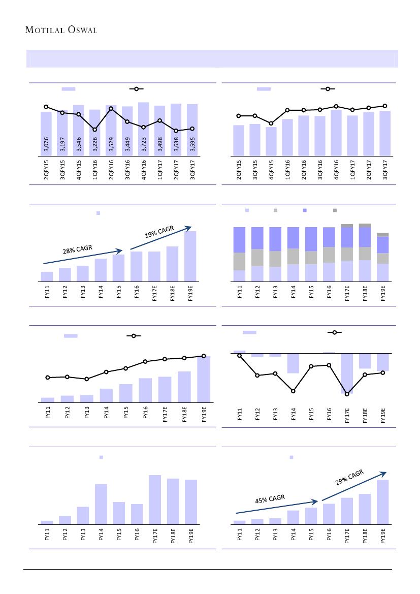 11% YoY to INR3.6b (in-line) in 3QFY17. EBITDA margin came in at 21.2%