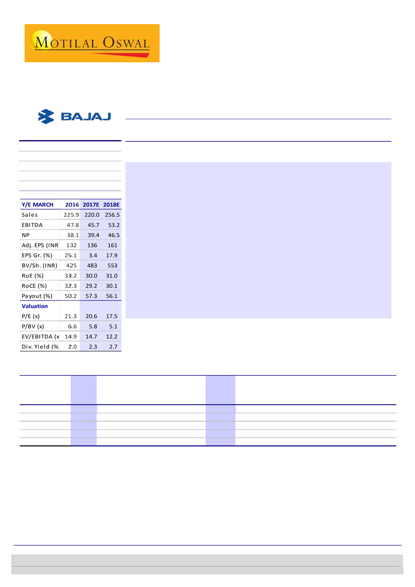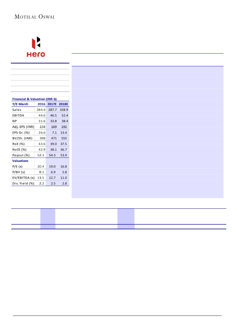 Motorcycle volumes declined by 16% YoY due to the impact of demonetization.
