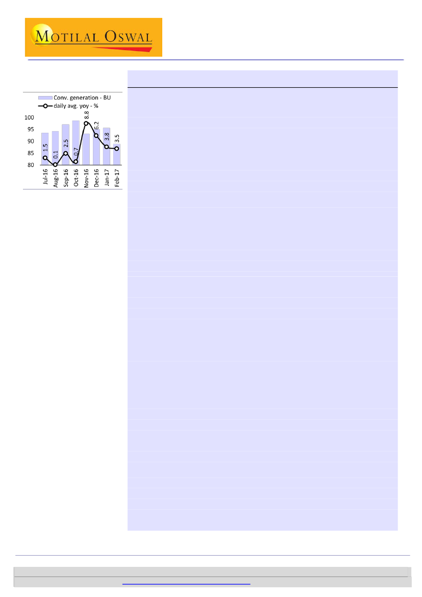 Generation increased 4.6% YoY to 1,052bkwh in 11mFY17.
