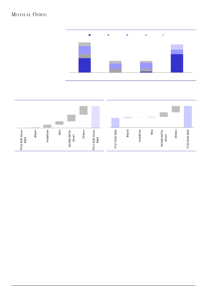 cities. Based on spectrum and cell sites, Bharti’s capacity is in line with RJio’s and