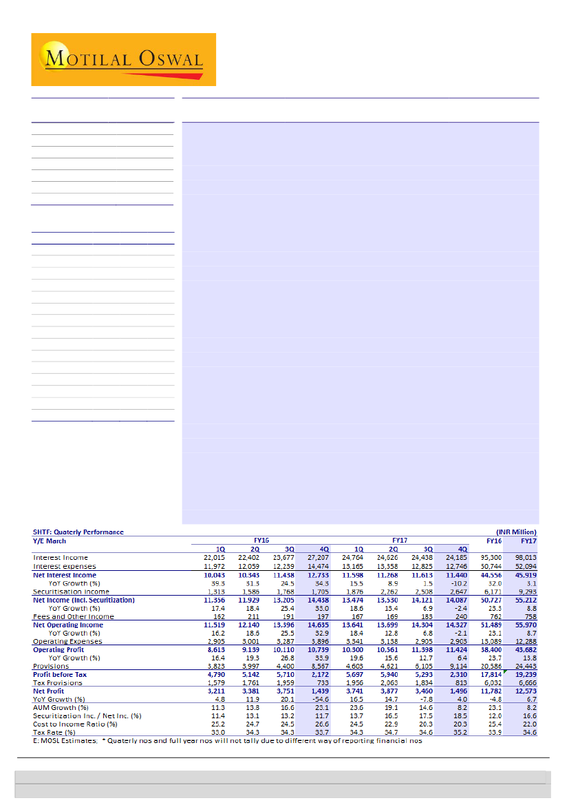 Shriram Transport’s (SHTF) 4QFY17 PAT of INR1.5b was in line with our