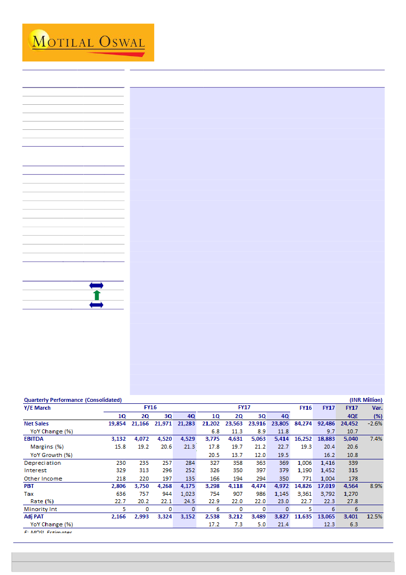 quarter. EBITDA margin expanded 150bp YoY to 22.7% in 4QFY17. Consol.