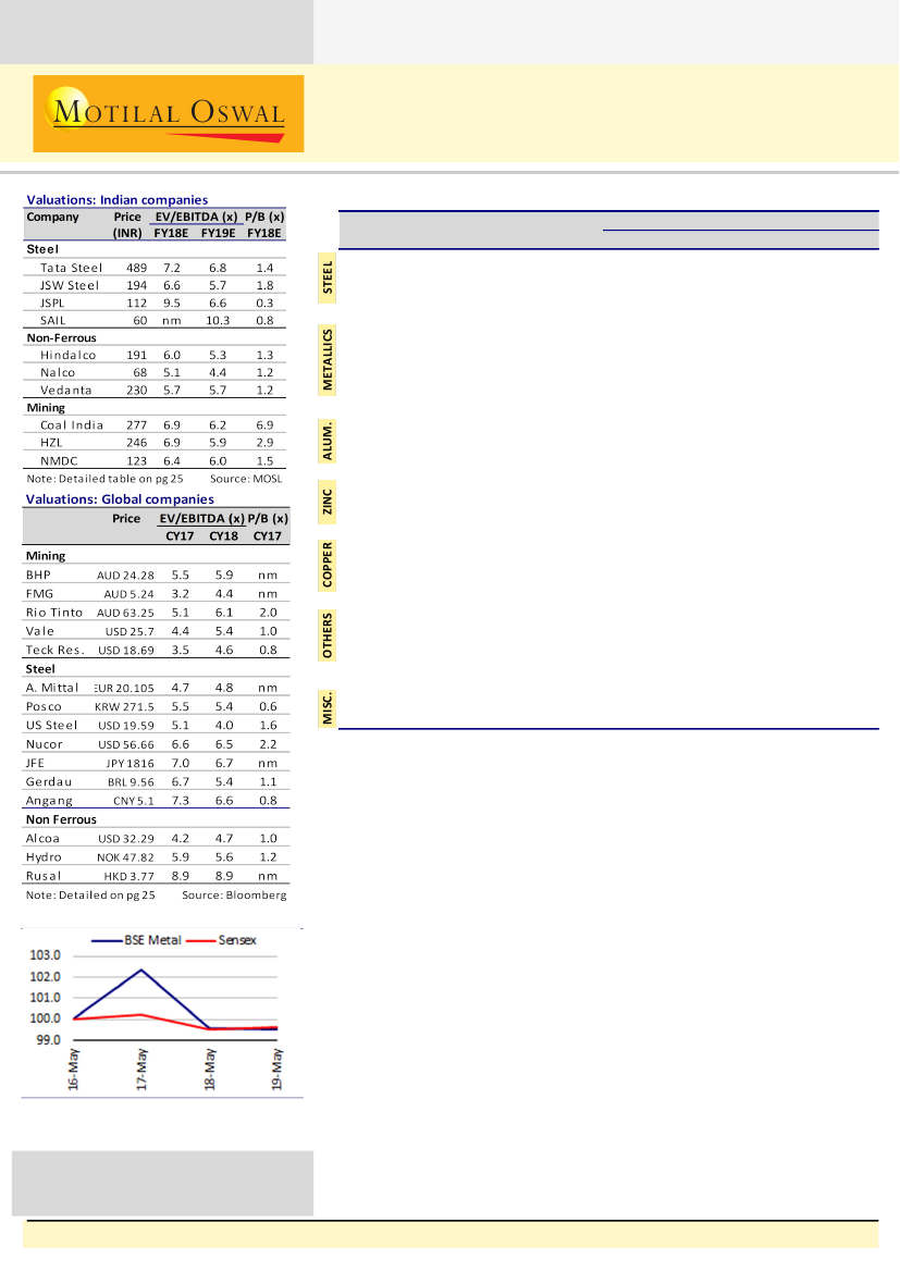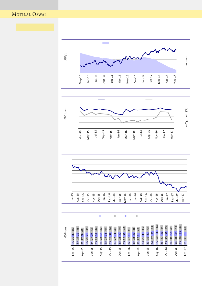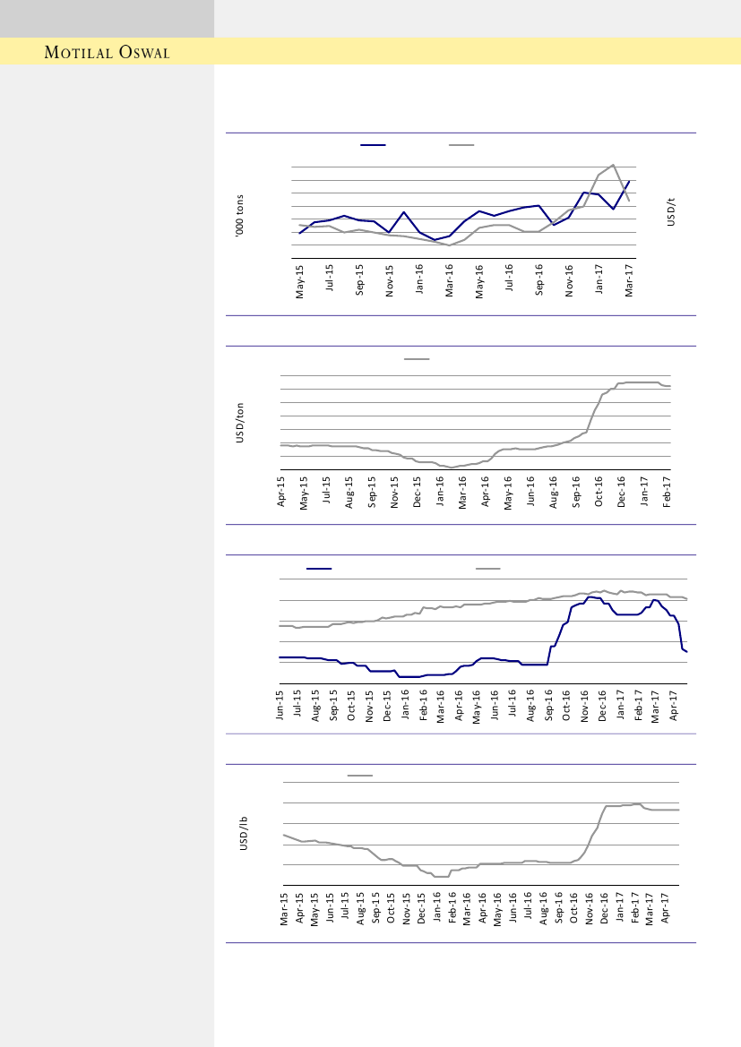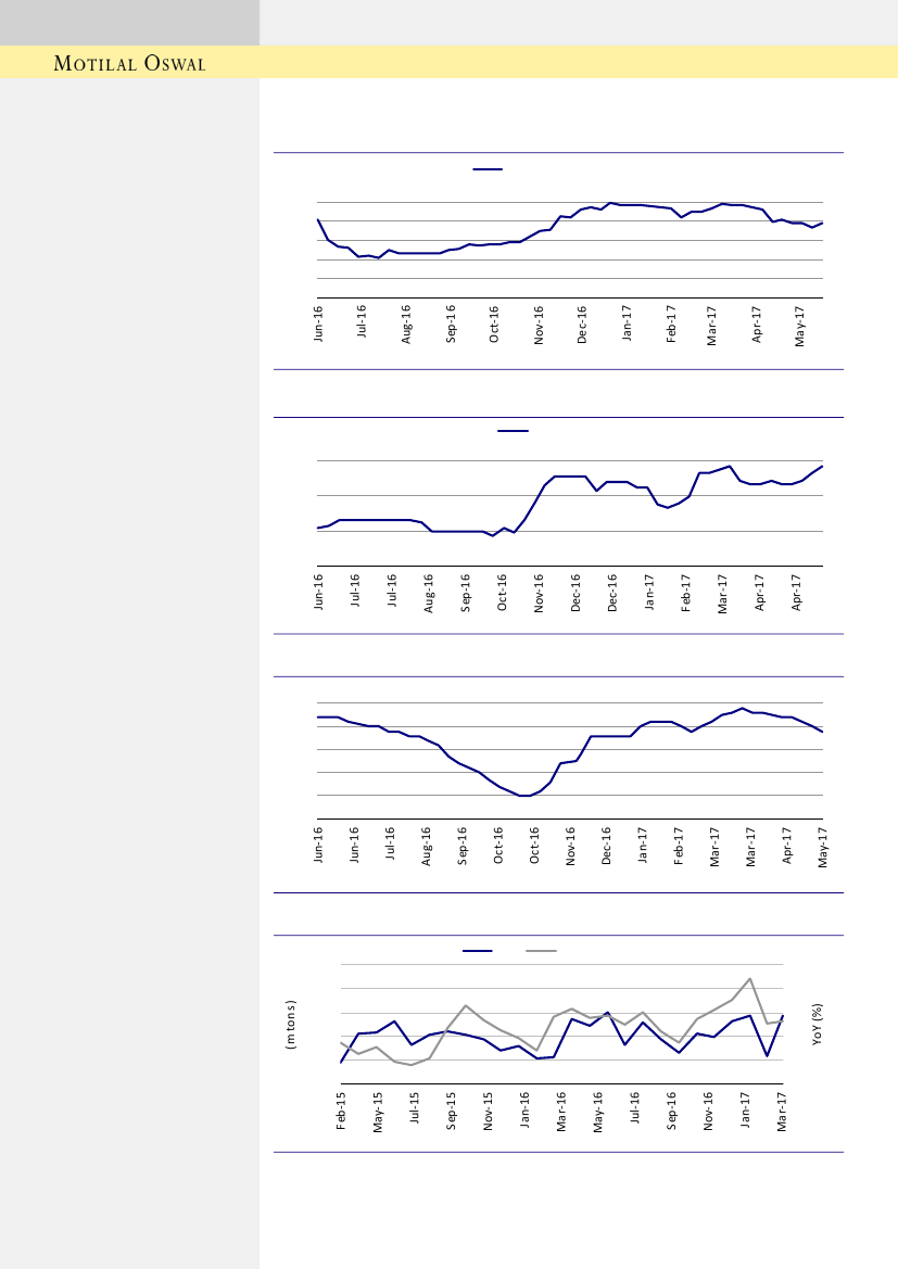 few weeks, while rebar prices rose ~3% WoW. Chinese steel product