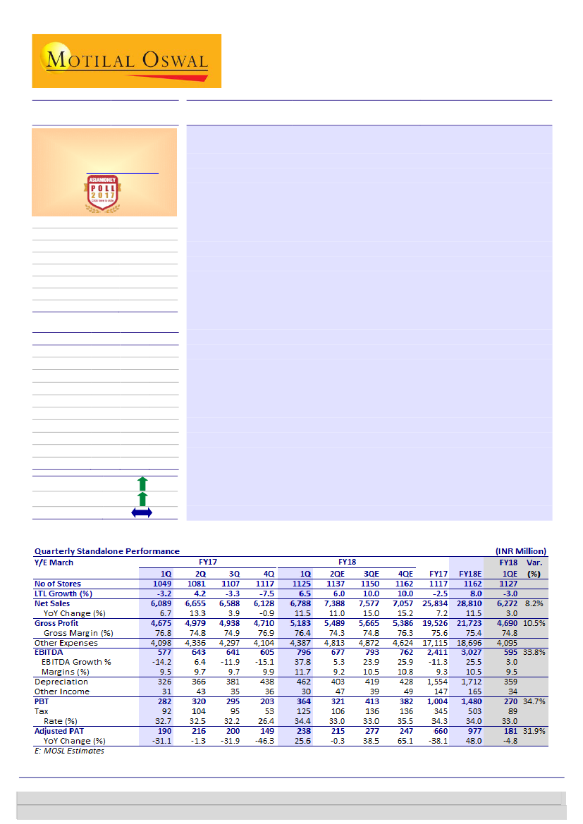 (1) SSSG of 6.5% in 1QFY18 was led by growth in business
