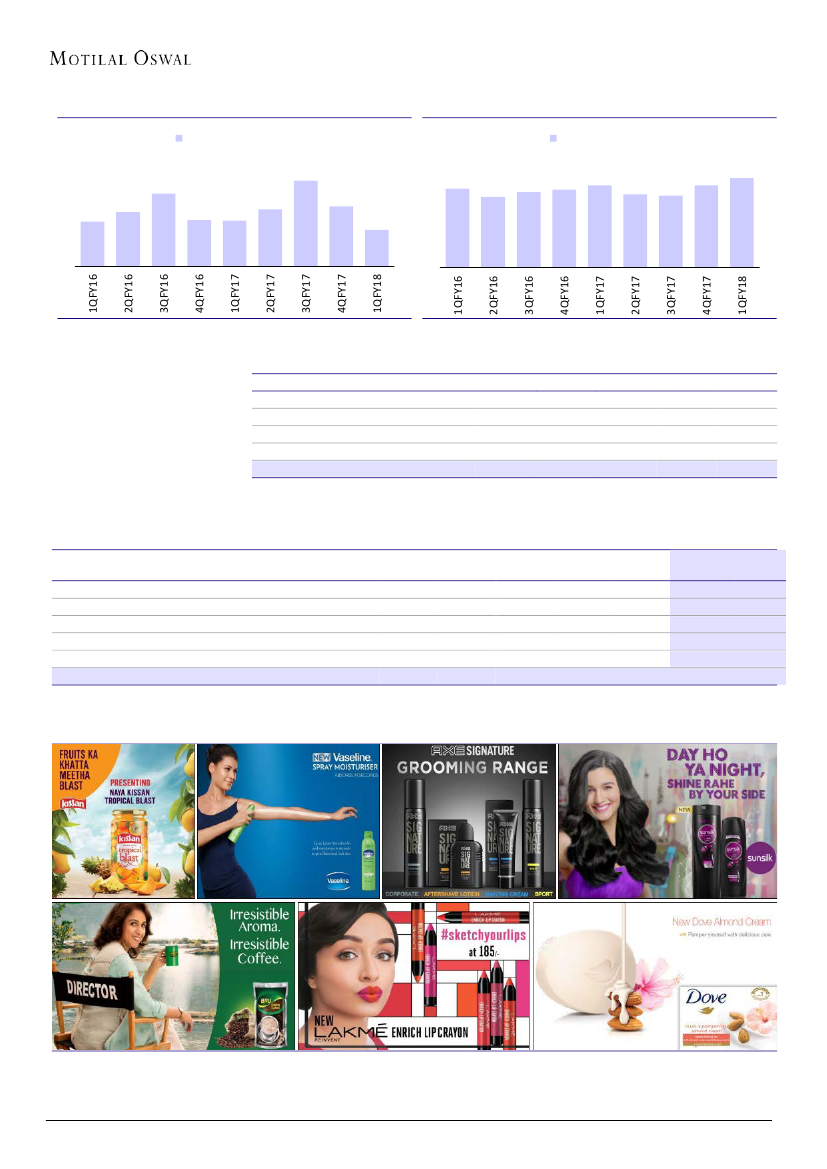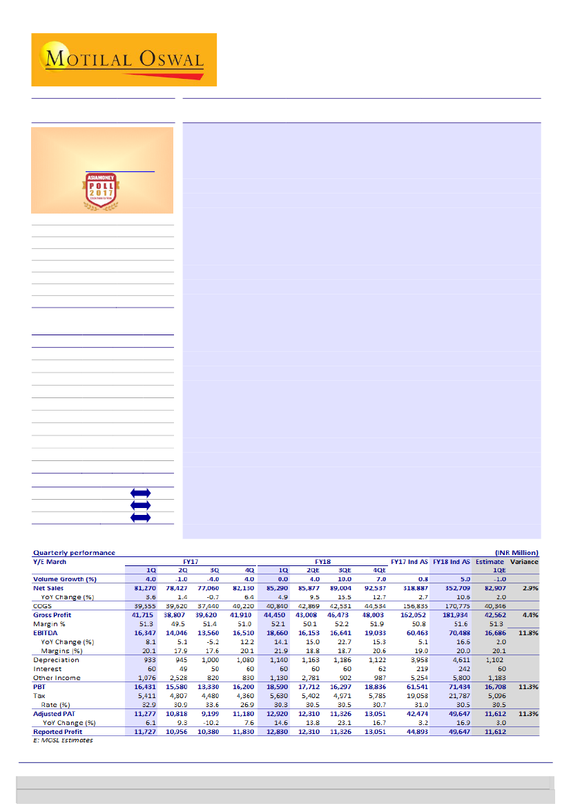 Hindustan Unilever’s (HUVR) 1QFY18 net sales increased 4.9% YoY