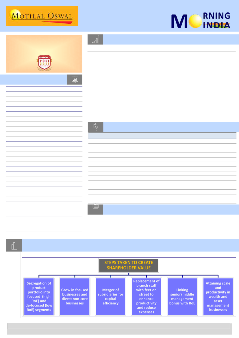 with a target to achieve 18-20% RoE by FY20 (~12% in FY17).