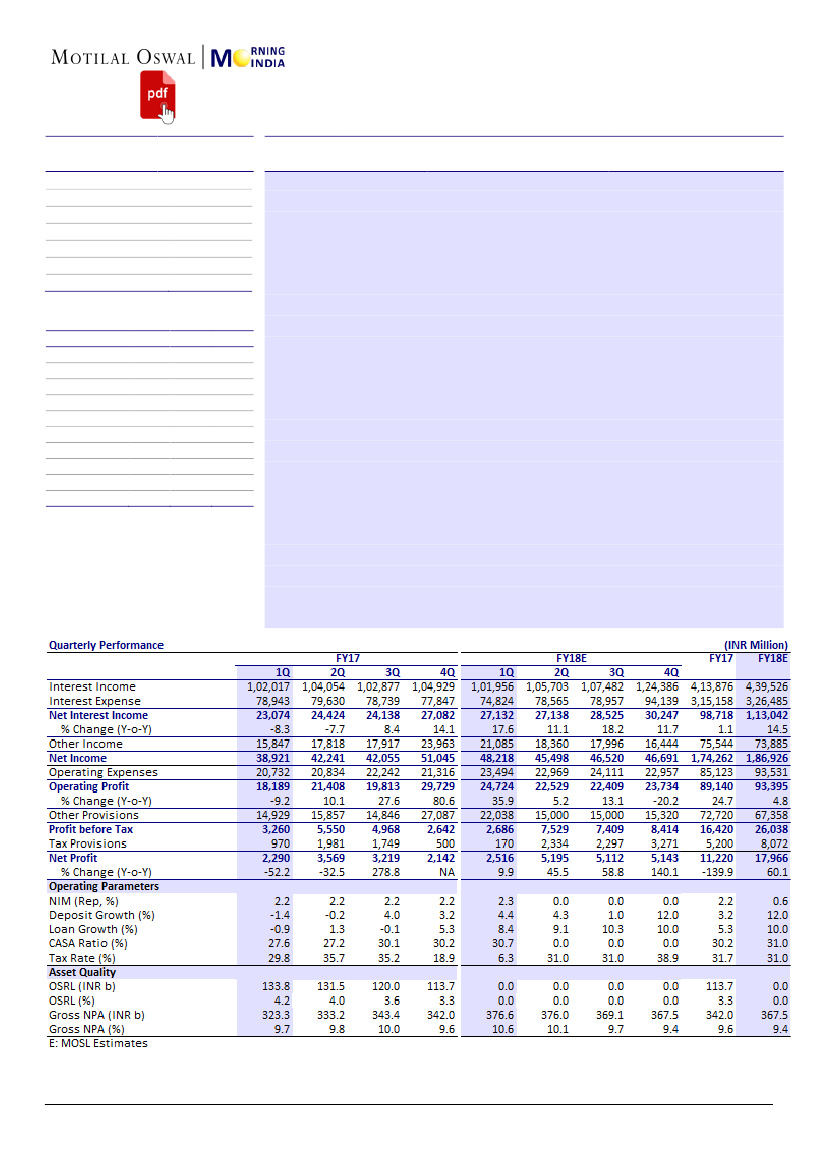 costs should elevate RoA/RoE from 1.5%/12.4% in FY17 to 2.3%/19.2% in