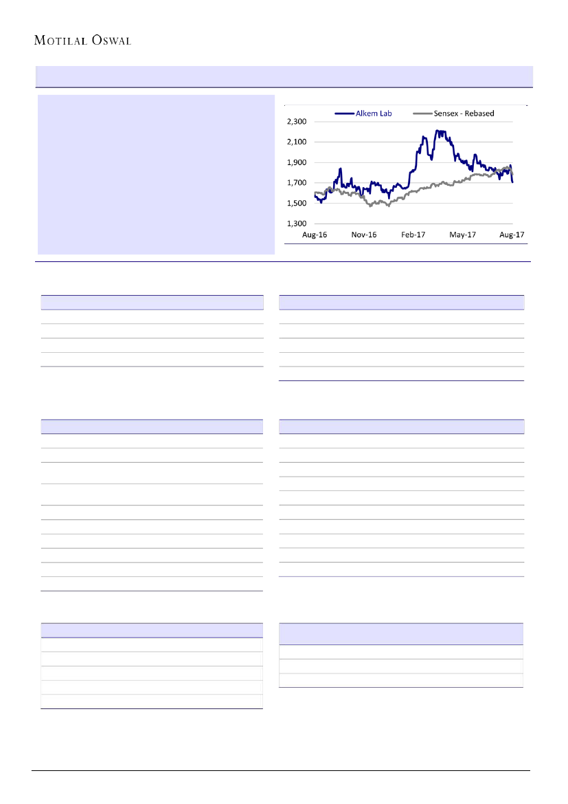 room for upside. Our target price of INR1,830 for Alkem is based on 20x FY19E