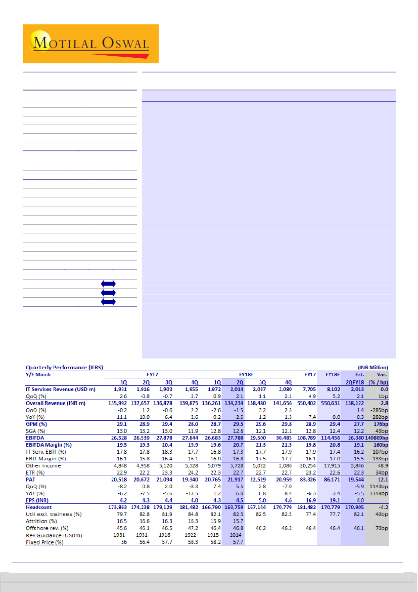 guidance to sustain current valuations. WPRO trades at 15.2/14.4x FY18/
