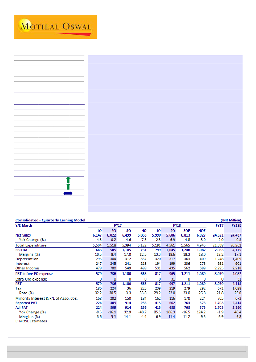 EBITDA doubled to INR1045m in 2QFY18, led by a) restructuring benefits