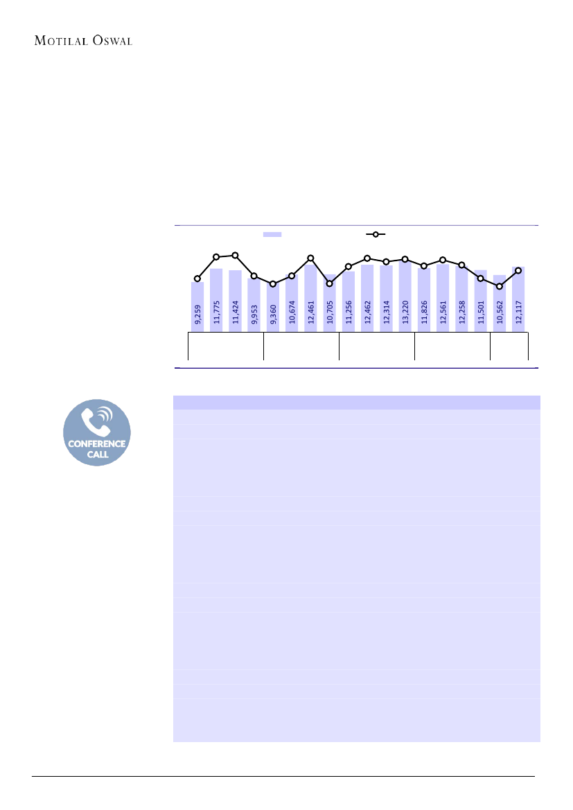 INR13b (in-line), implying EBITDA margin of 19.7% (-170bp YoY, +250bp QoQ;