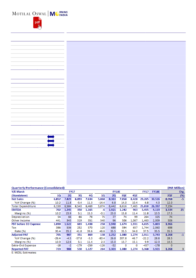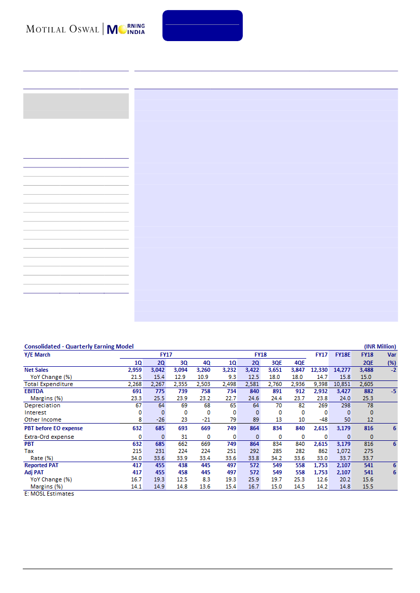 EBITDA at INR5.6b, up 1% QoQ, 4% below estimate